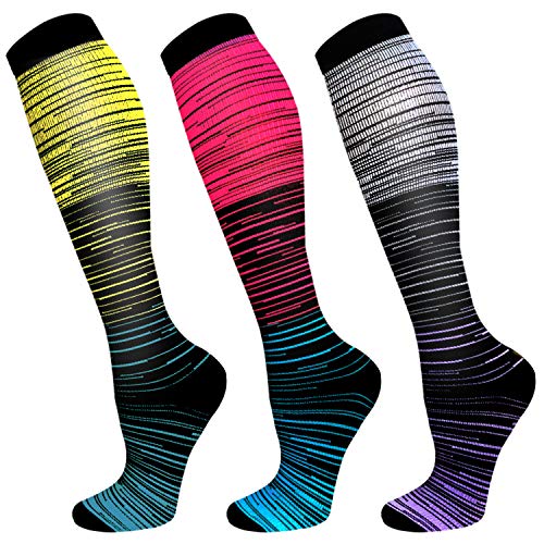 - 3 PACK OF COMPRESSION SOCKS- Each pack includes 3 pairs of compression socks . Our design of comfort and style comes at a very affordable price in comparison. There are available in different fabrics and colors. They are discreet and look like the ordinary socks you already wear to work. Our socks are universally suitable for all work.Whether you are an athlete,teacher,flight crew,receptionist, office worker, pregnant, elderly ,They'll work for you as you work for yourself and your family.